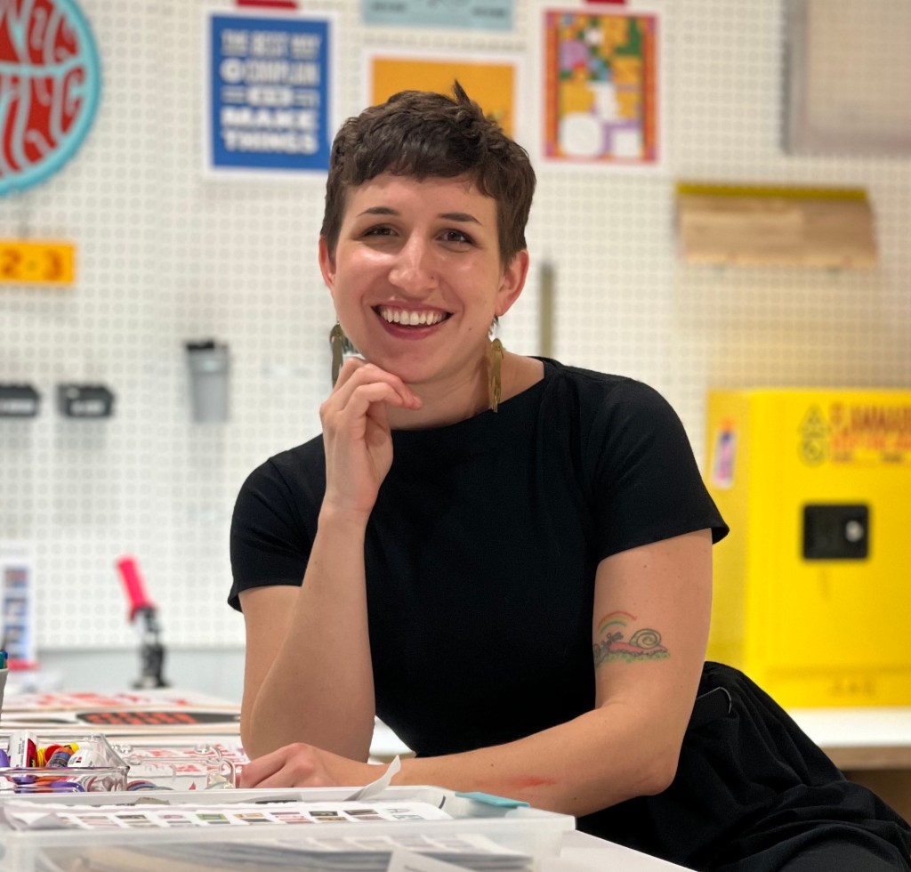 Rachel Curry is a teaching artist, letterpress printer, bookbinder, zinester, and fiber artist from Los Angeles, California. She received her BA in Art Education with an emphasis in Fiber Arts from CSULB and has experience teaching at institutions such as Otis College of Art and Design, The Huntington Library, Meta Open Arts, and Craft Contemporary as well as high schools and community organizations across Southern California. Her practice as an artist and an educator is rooted in the belief that art is for everyone and that it is possible to build a better world through creative expression.